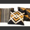 Throw Pillows, Decorative Digitally Printed, Soft Jute Fabric, Solid Cushion Covers 16 X 16 For Couch, Bedroom, Car, Pack of 3,   Geometrical Design (Yellow, Black, White)